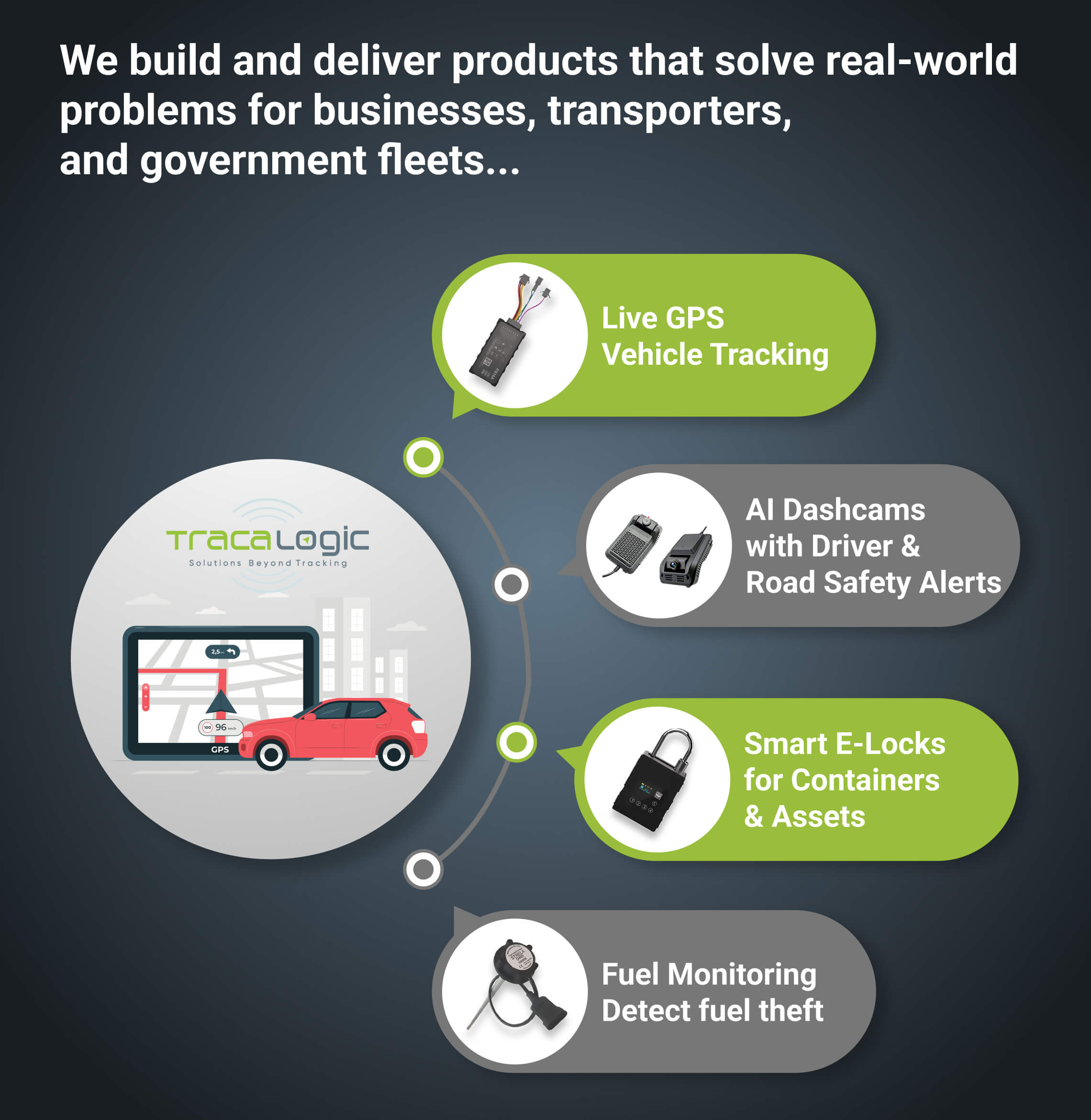 We build and deliver products that solve real-world problems for businesses, transporters, and government fleets: